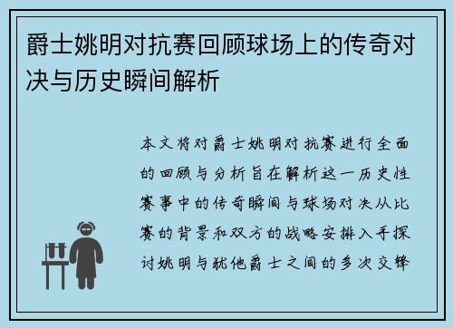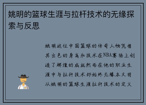 姚明,作为中国篮球的代表性人物,不仅在球场上展现了超凡的才华,也在他成长的过程中经历了种种挑战与磨难。他的故事不仅是一个运动员追求卓越的旅程,更是对梦想与坚持、努力与成功之间关系的深刻探索。本文将从姚明的成长背景、职业生涯中的重大挑战、退役后的新事业以及对后辈球员的影响四个方面,深入分析姚明这一篮球巨星背后的故事,探讨他的经历所带来的启示与思考。 1、姚明的成长背景 姚明出生于中国上海,他的身高...