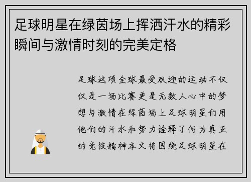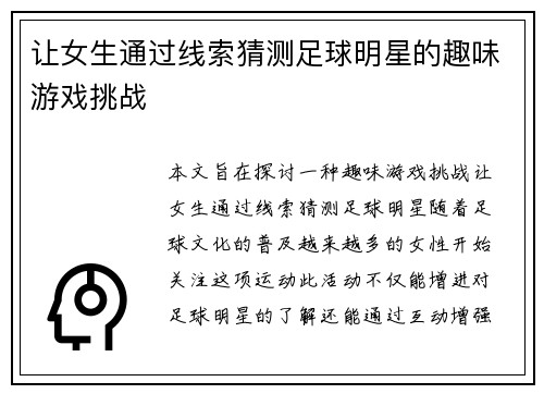 随着电子竞技的崛起,越来越多的足球明星们开始展现出他们在Dota等游戏中的热情与实力。这篇文章将深入探讨这些绿茵场上的运动员是如何将其在足球赛场上的战斗精神延续到虚拟世界中。我们将从四个方面进行分析:足球明星们的电竞兴趣来源、他们在Dota中的游戏风格、与其他职业选手的互动,以及他们对电竞文化的推动作用。通过这四个方面,我们不仅能够看到足球与电竞之间的共通之处,还能体会到这些体育巨星在游戏中展现出...